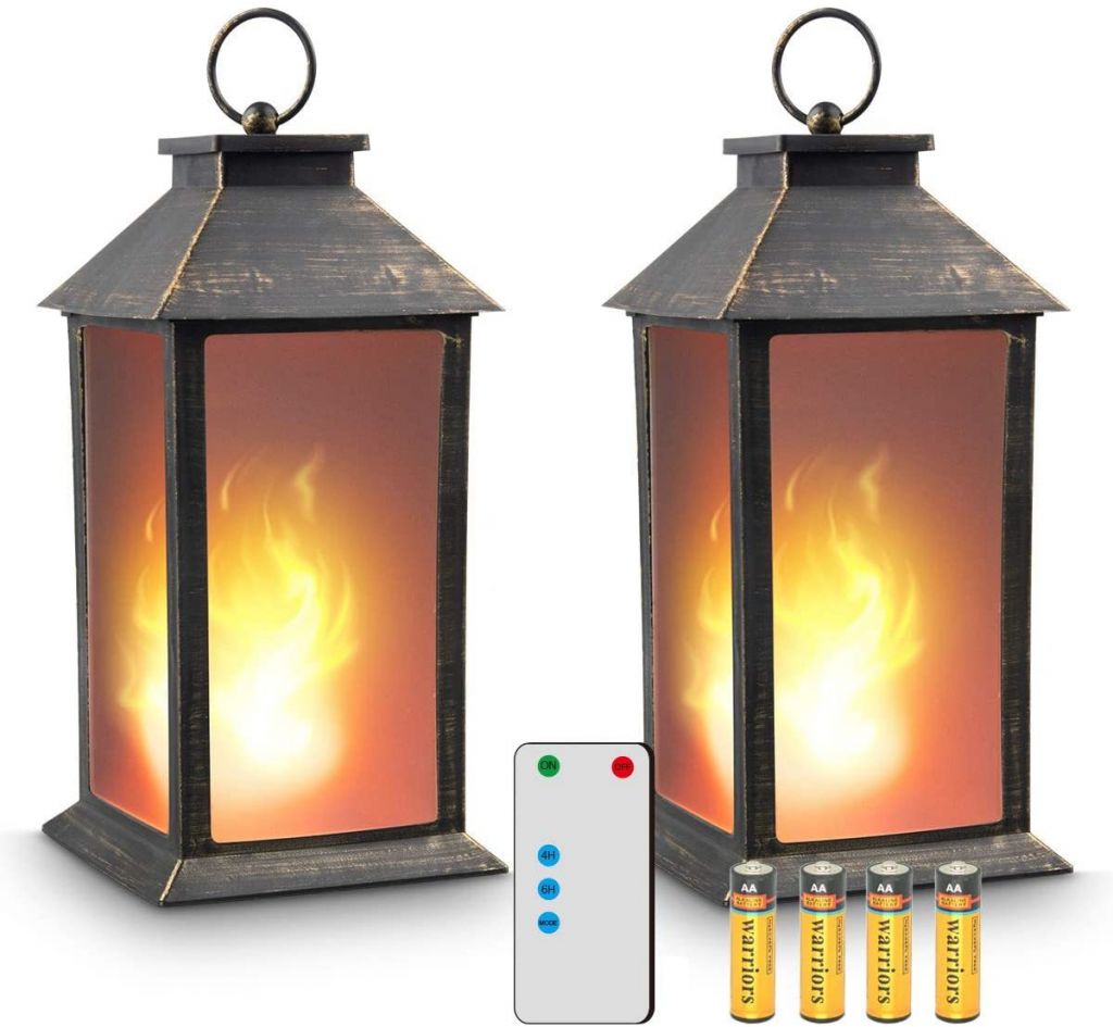 Zkee 13" Vintage Style Lantern,Flickering Flame Effect Tabletop Lantern(Black,Remote Timer And Batteries Included) Indoor/Outdoor Hanging Lantern,Decorative Candle Lantern (Set Of 2)