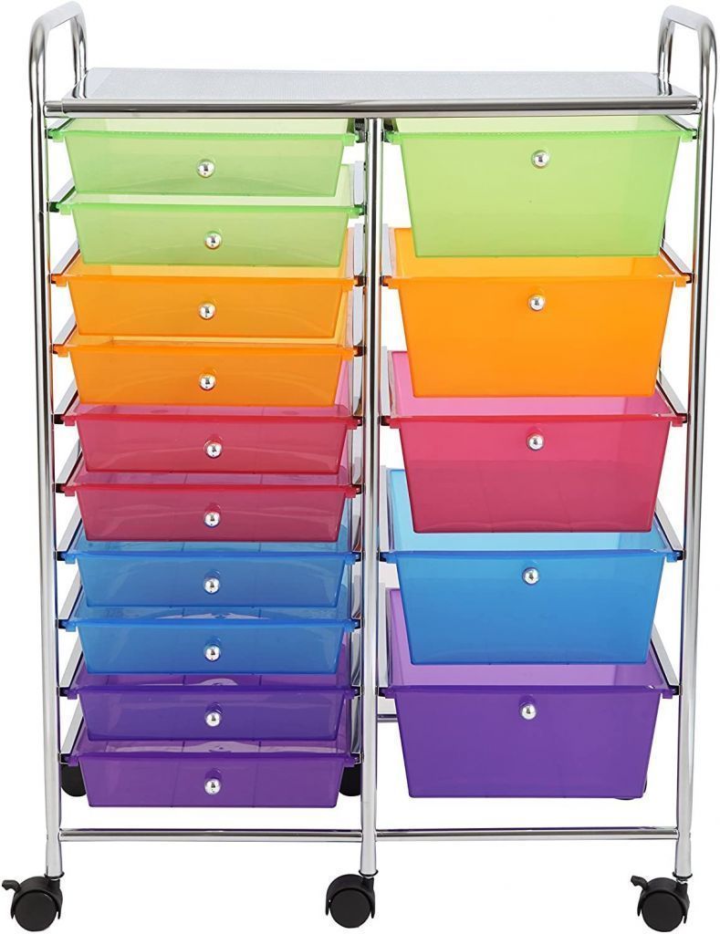 Finnhomy 15 Drawer Rolling Cart, Storage Rolling Cart with Semi Transparent Multi Color Drawer , Organizer Cart for School, Office, Home, Beauty, Salon Utility Cart with Wheels