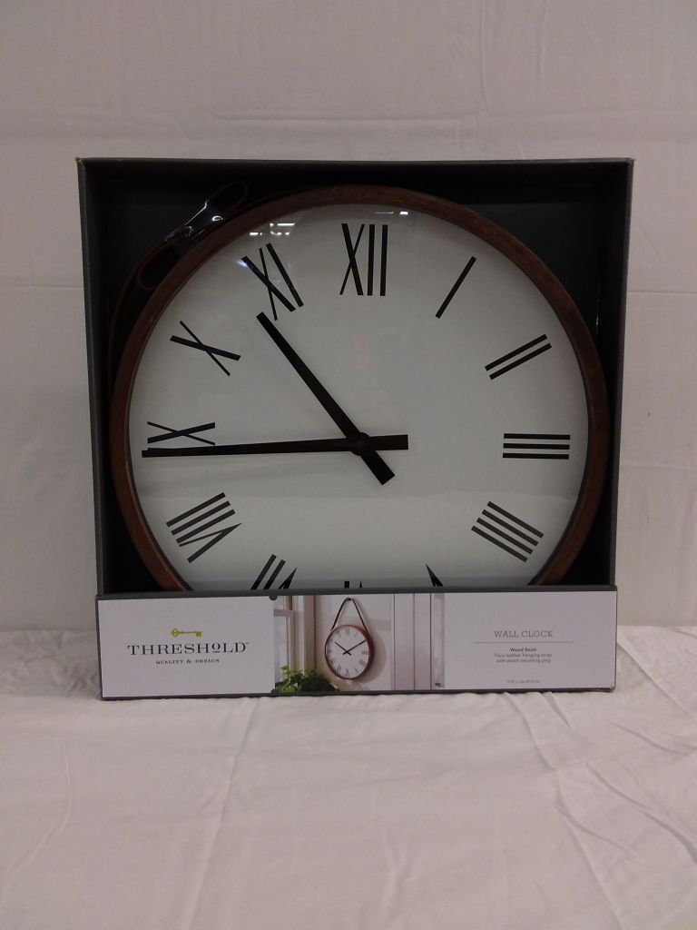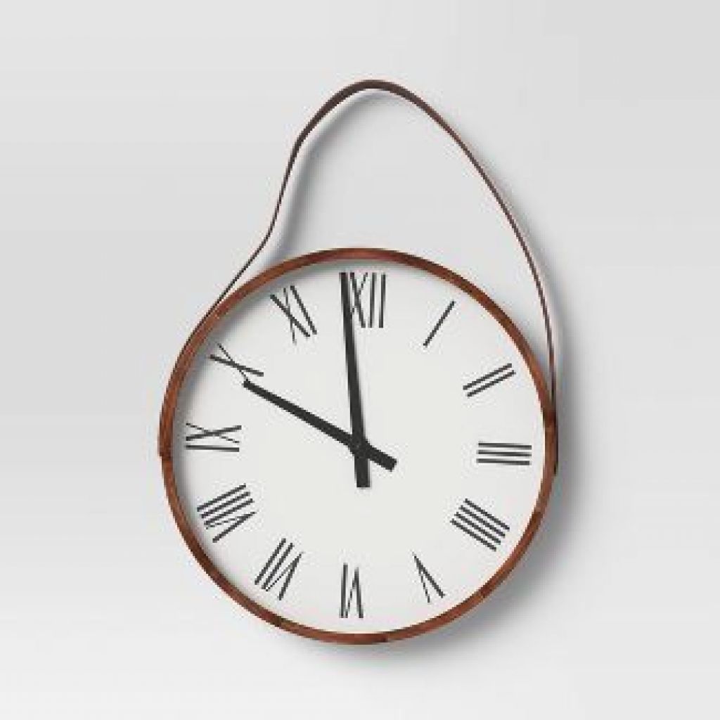 16" Wall Clock with Leather Strap Brown - Threshold™