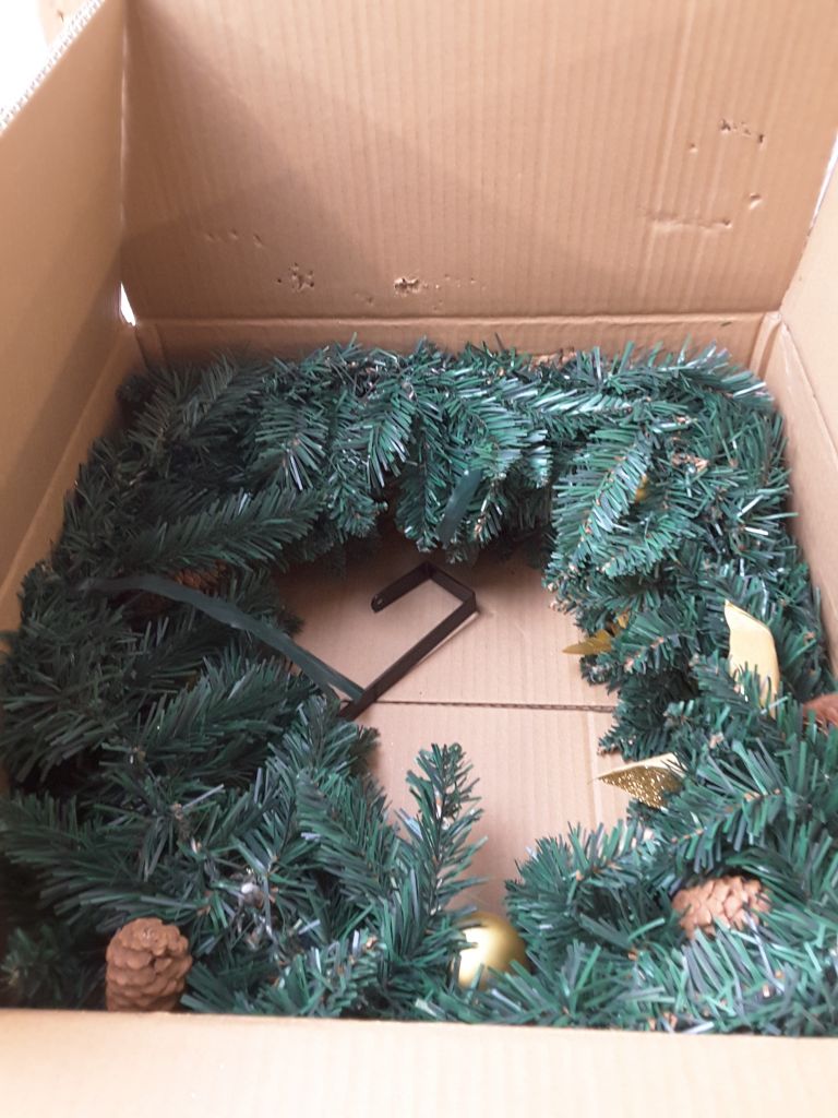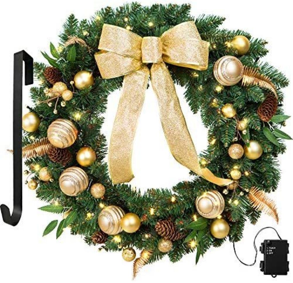 LIFEFAIR Artificial Christmas Wreaths, 24 Inch Wreath Gold Bowknot, Berry, Ball, with 50 Battery Operated LED Lights and Christmas Hanger