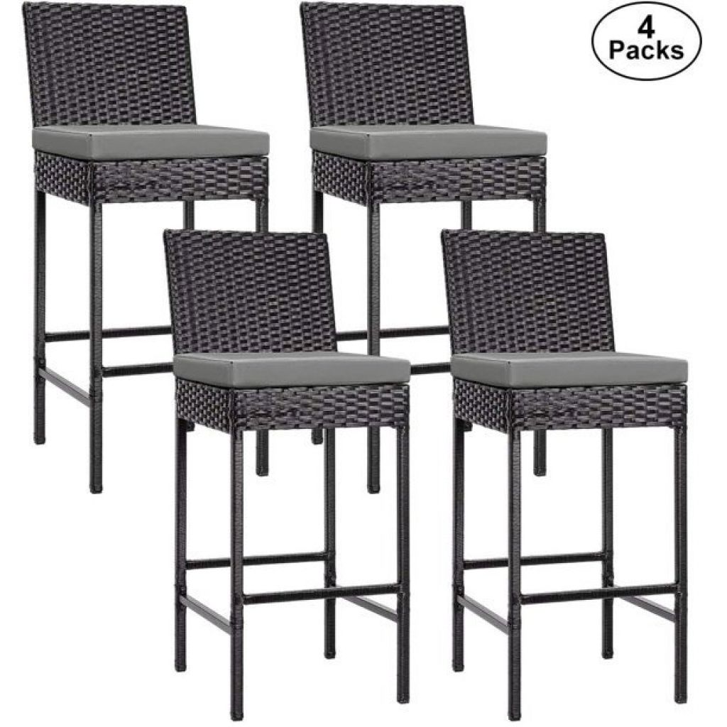 4 Packs Outdoor Wicker Barstool Patio Rattan Furniture with Cushions in Black