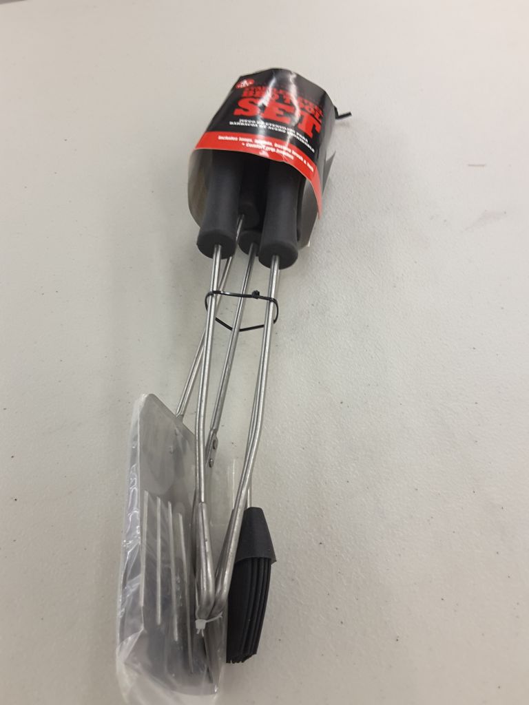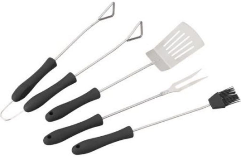 4 Piece BBQ Tool Set W/ Comfort Grip Stainless Steel Spatula Tong Fork Brush NWT