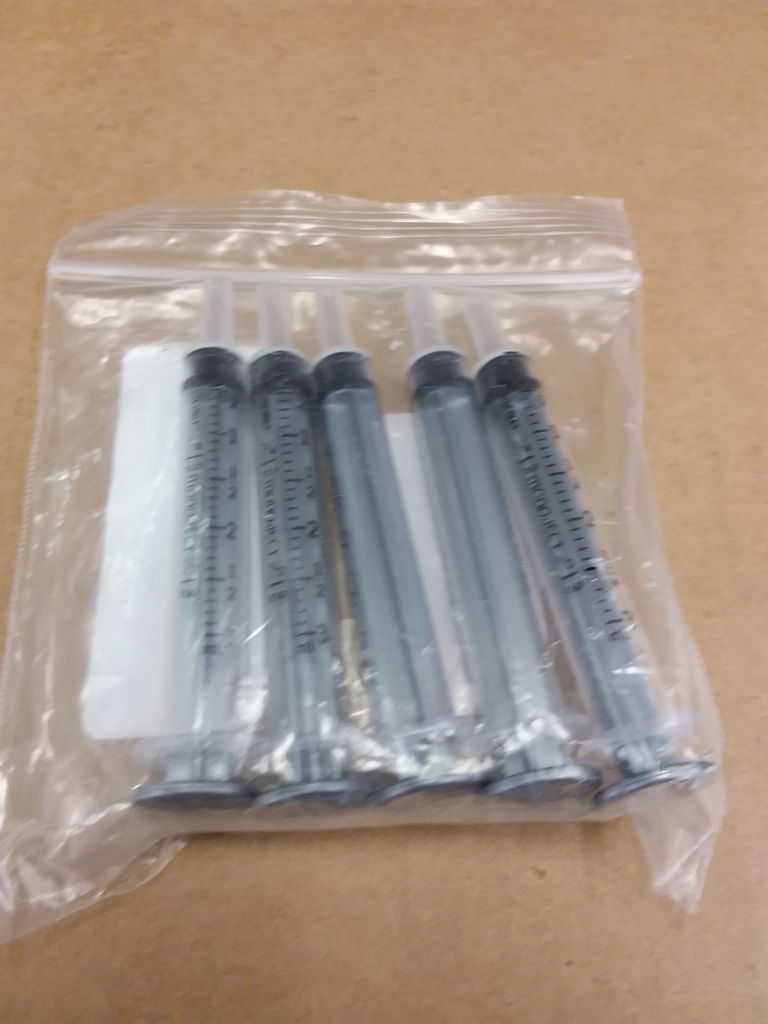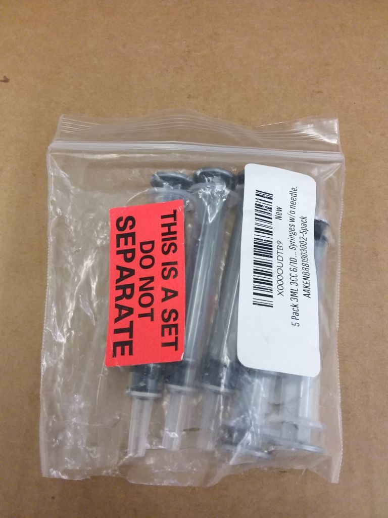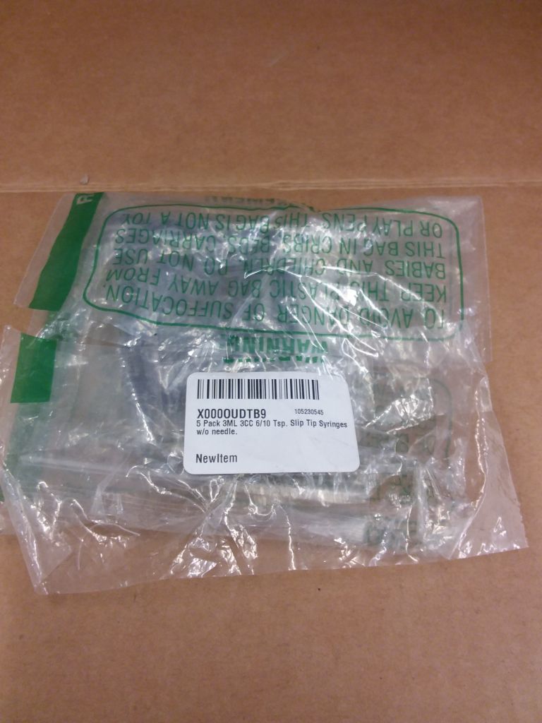 5 Pack 3ML 3CC 6/10 Tsp. Slip Tip Syringes with No Needle
