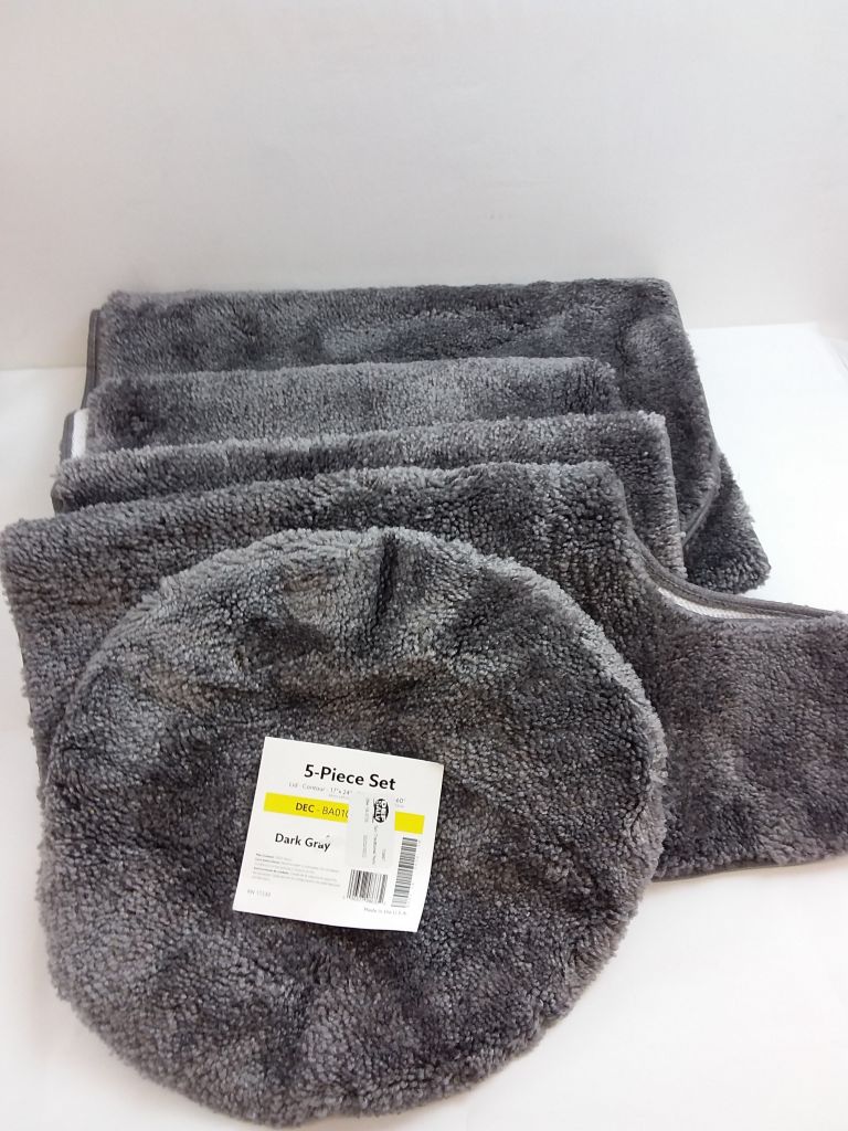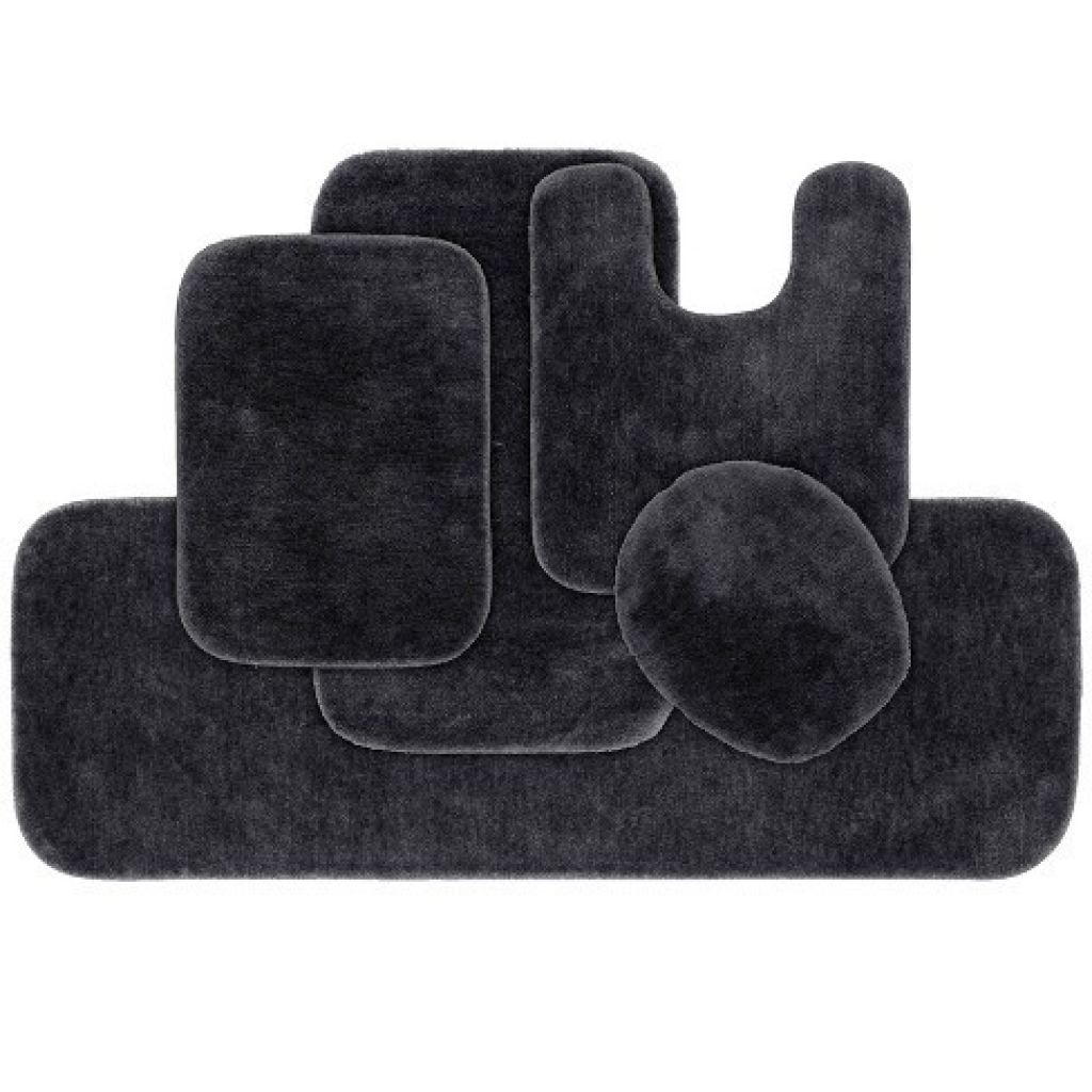 5pc Traditional Nylon Bath Rug Set Dark Gray