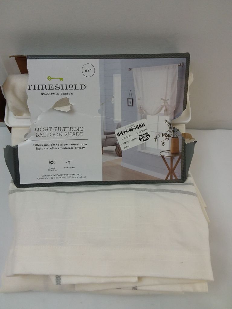 63"x42" Plaid Border Light Filtering Balloon Shade White