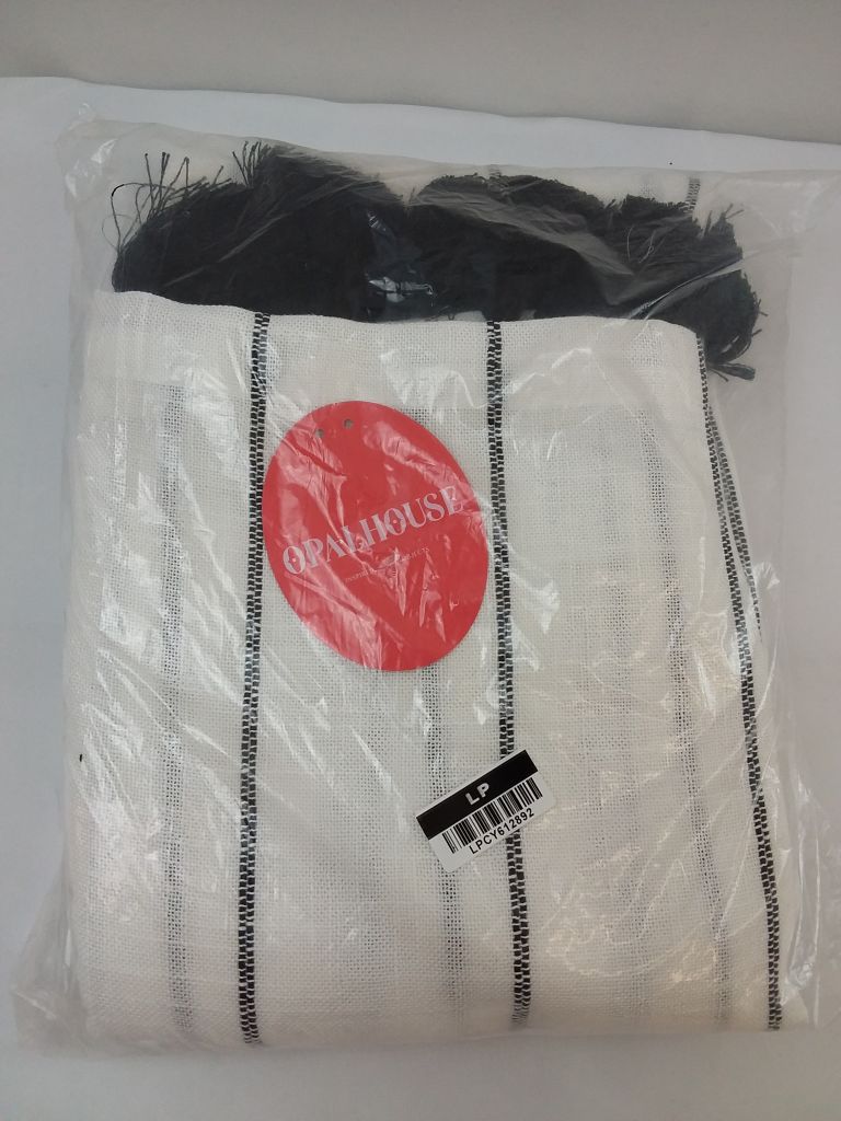 63"x54" Light Filtering Window Curtain Panel with Tassel Black/White- Opalhouse