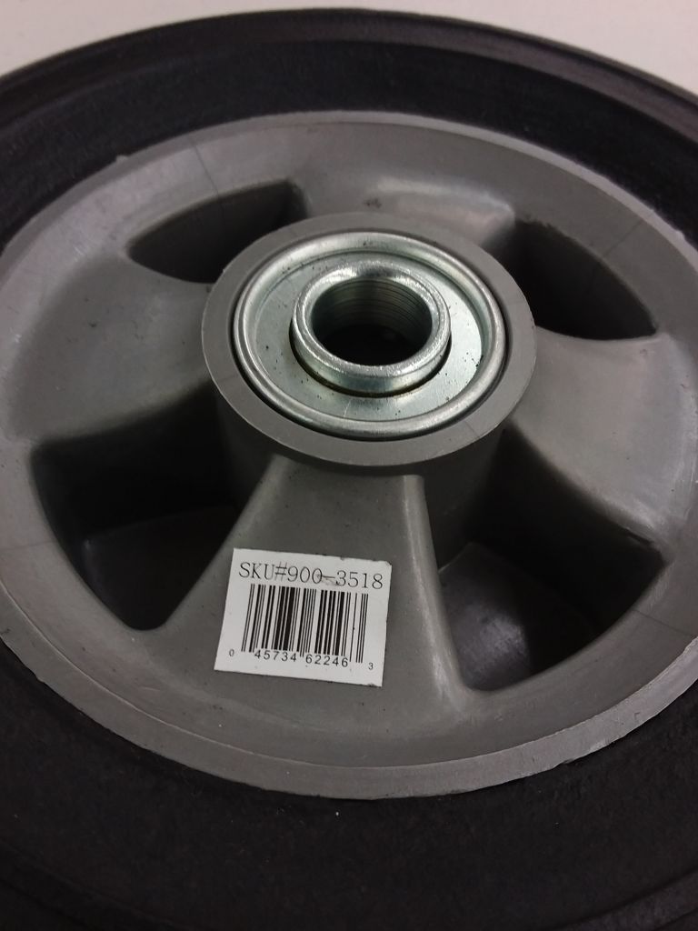 SKU #900. Tire Size 8" x 2-1/4". Axle Size 5/8" Diameter. 1-13/16" Hub Length. Ribbed Tread Pattern.