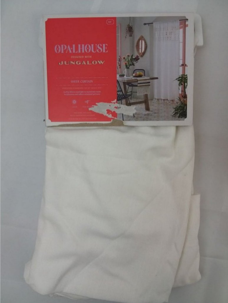 84"x50" Banded Geo Macrame Sheer Curtain Panel White - Opalhouse designed with Jungalow
