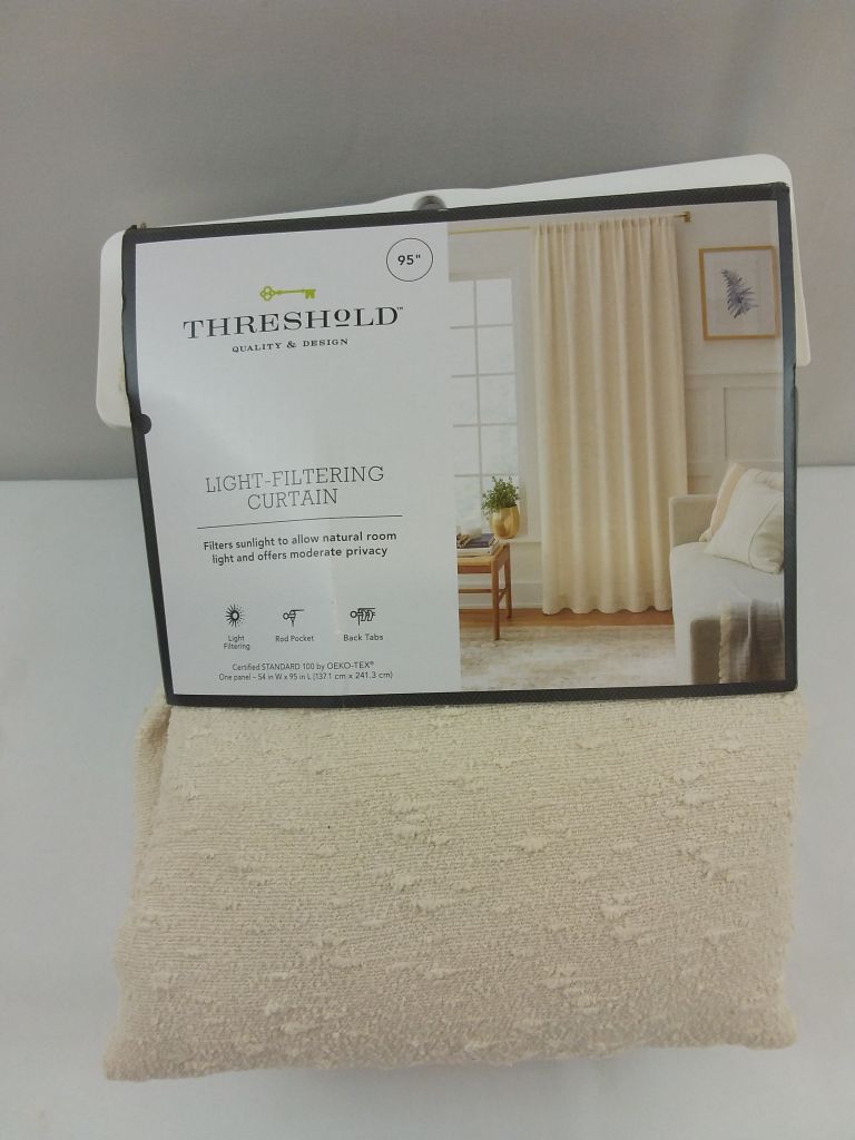95"x54" Textural Boucle Light Filtering Curtain Panel Cream - Threshold
