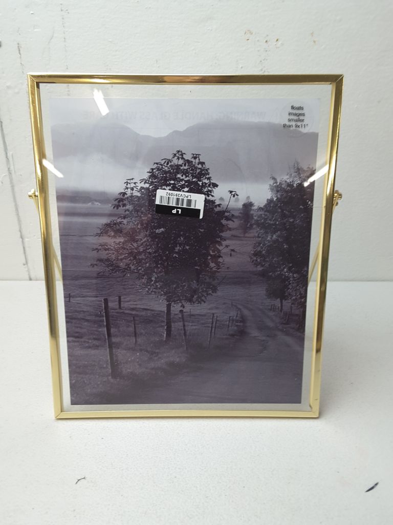 9.625" x 11.25" Float to 8" x 10" Linear Metal Easel Single Image Frame Brass