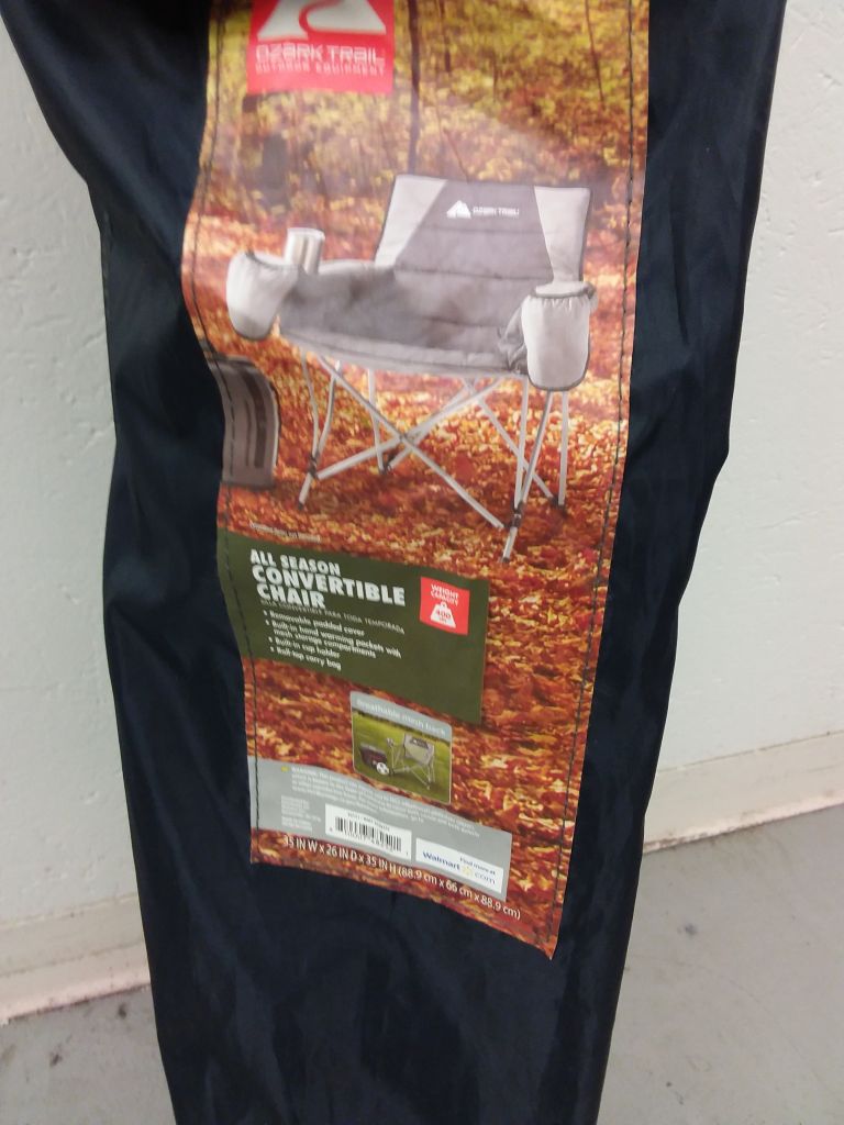Perfect chair any warm or cold occasions Removable padded cover that is built with hand warming pockets to help keep your hands warm on chilly mornings at the campsite Mesh storage pocket to hold smaller items like sunglasses, keys, or playing cards Built in cupholder to hold your favorite drink Breathable mesh back when the padded over is removed Roll top carry bag with shoulder strap for quick and easy transportation Constructed with a durable steel frame Relax in comfort and style on your next outdoor adventure Weight Capacity: 400 lbs. Dimensions: 35” x 26” x 35” (H) Model #: 30721