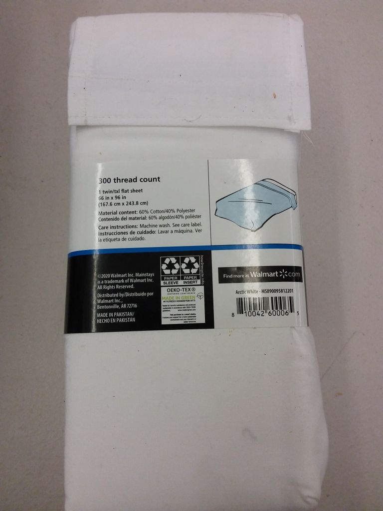 MainStays Flat Sheet for Twin/ Twin XL Flat, Moisture Wicking, Quick Dry, Wrinkle Resistant, 300 thread count