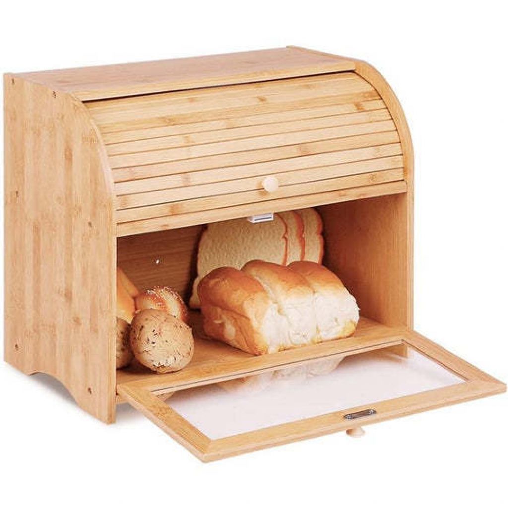 Bamboo 2 layer bread box w/ door curtain