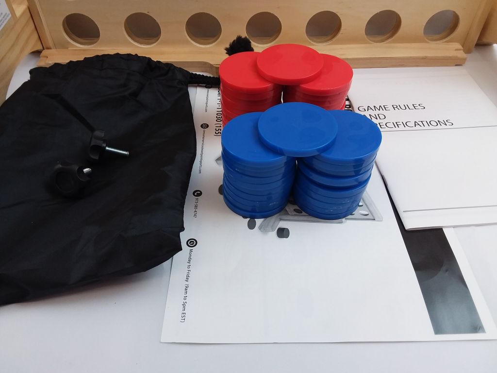 Measures 21.75" x 20.35" Comes with 42 discs in two team colors Suitable for any outdoor environment
