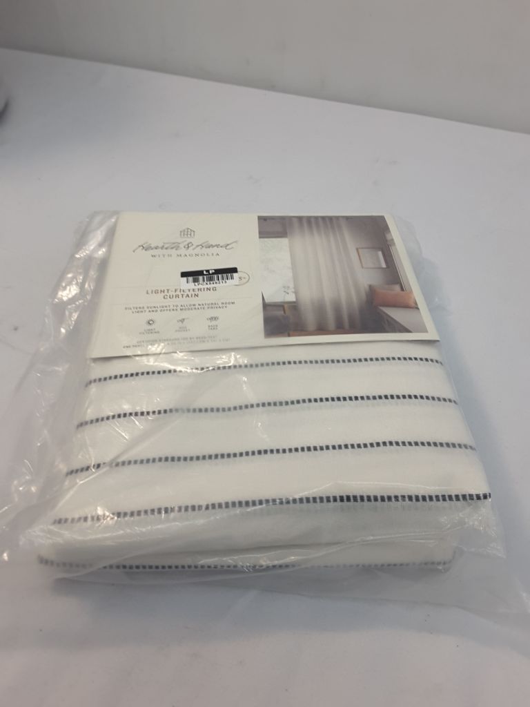 Blanket Stitch Curtain Panel Railroad Gray/Sour Cream - Hearth & Hand with Magnolia
