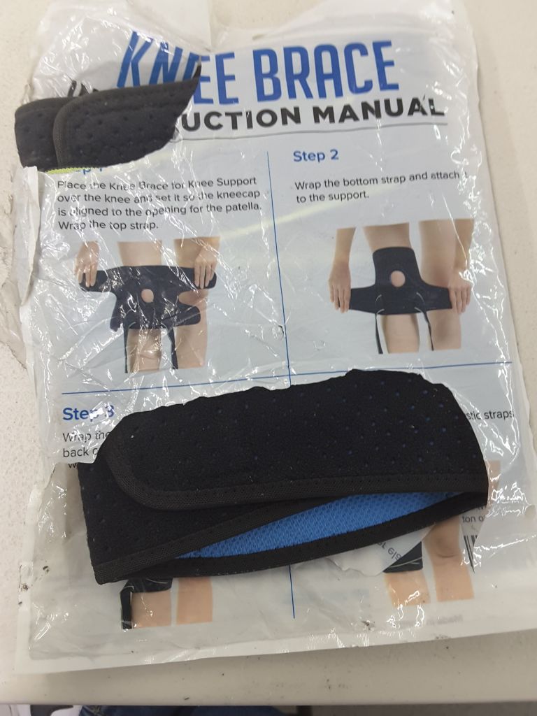 Knee brace black and green and blue