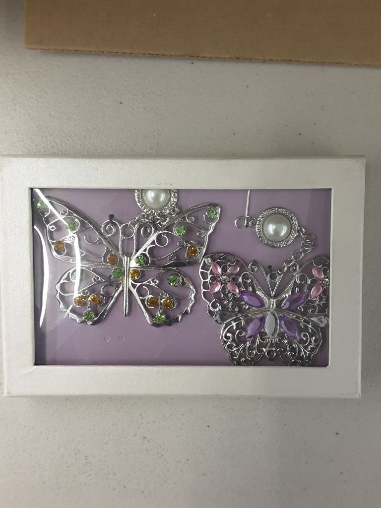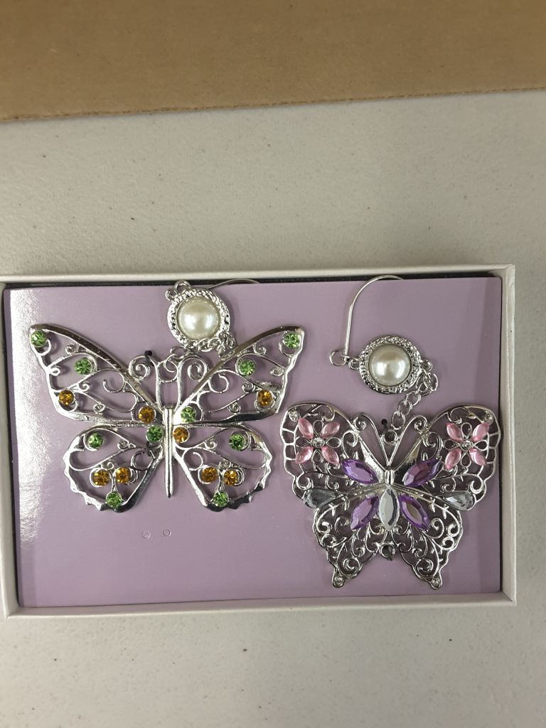 Set of 2 Colorful Rhinestone and Silver Filigree Ornaments - Butterfly Decorations - Hanging Butterflies - Butterfly