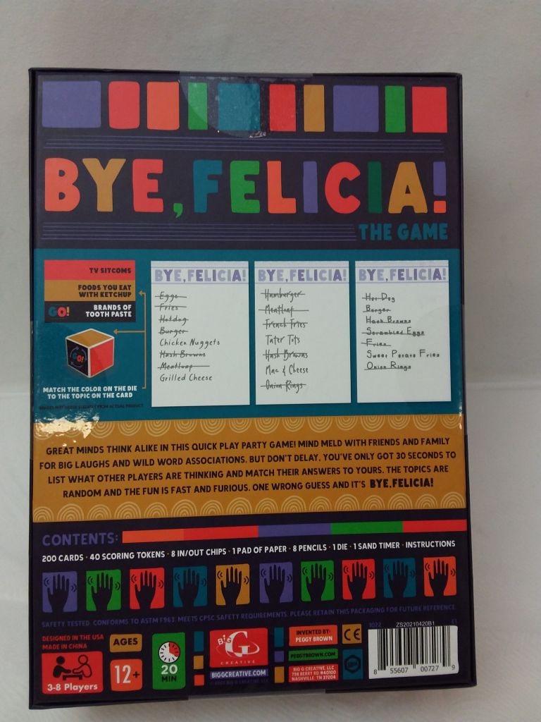 Great minds think alike in “Bye, Felicia!” You’ll love this quick play party game full of big laughs and wild word associations. Ages 12+ - For 3-8 players. 20 minute game play.