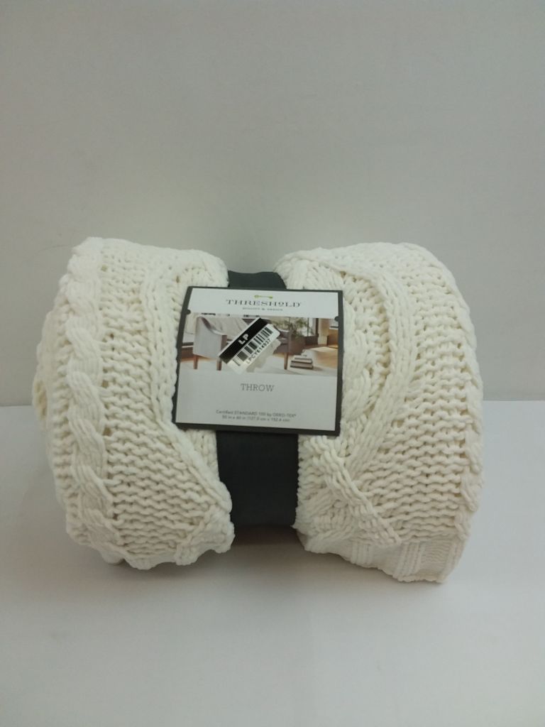 Cable Knit Chenille Throw Blanket Cream - Threshold