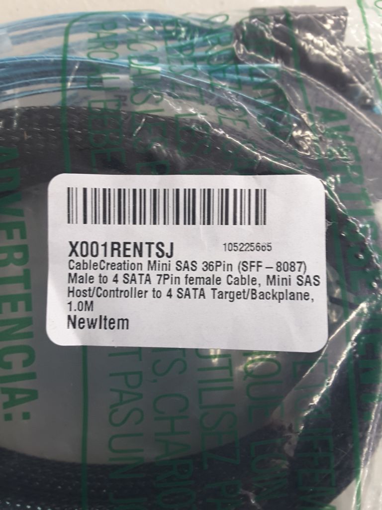 Two cables Mini SAS Host/Controller to 4 SATA Target/Backplane, 1M / 3.3FT