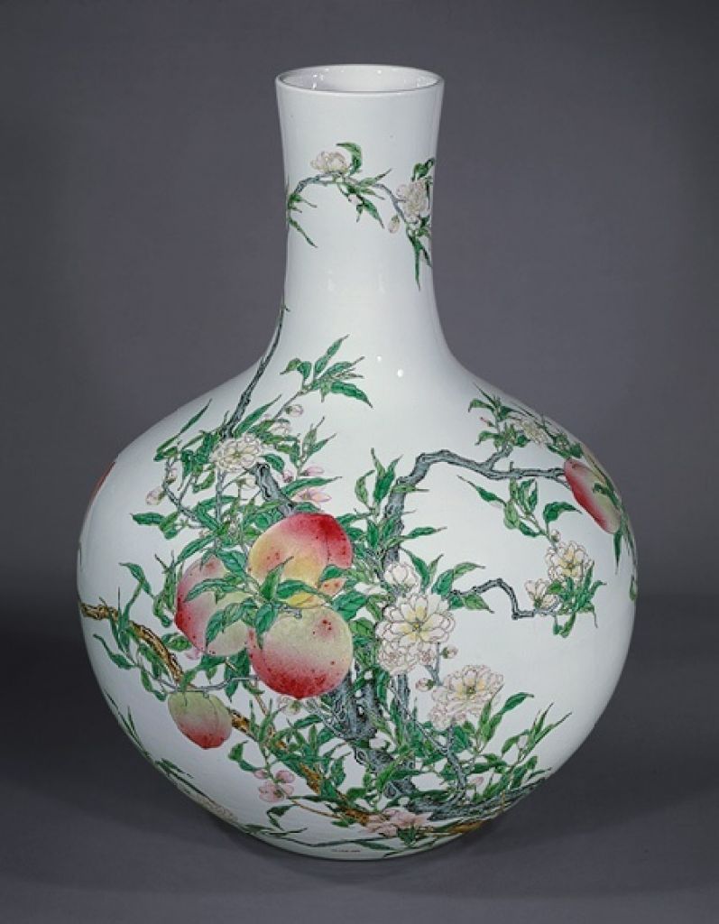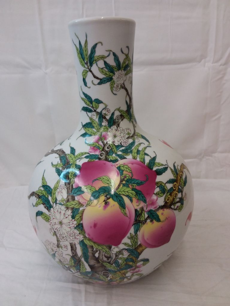 Chinese Style Peach Ceramic Art "Vase With Nine Peaches"