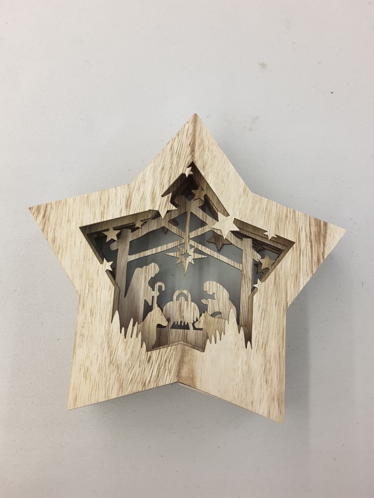 LED Backlight, Layered Design, 100% Wood, 10.5" Tall, Requires 2 AA Batteries.