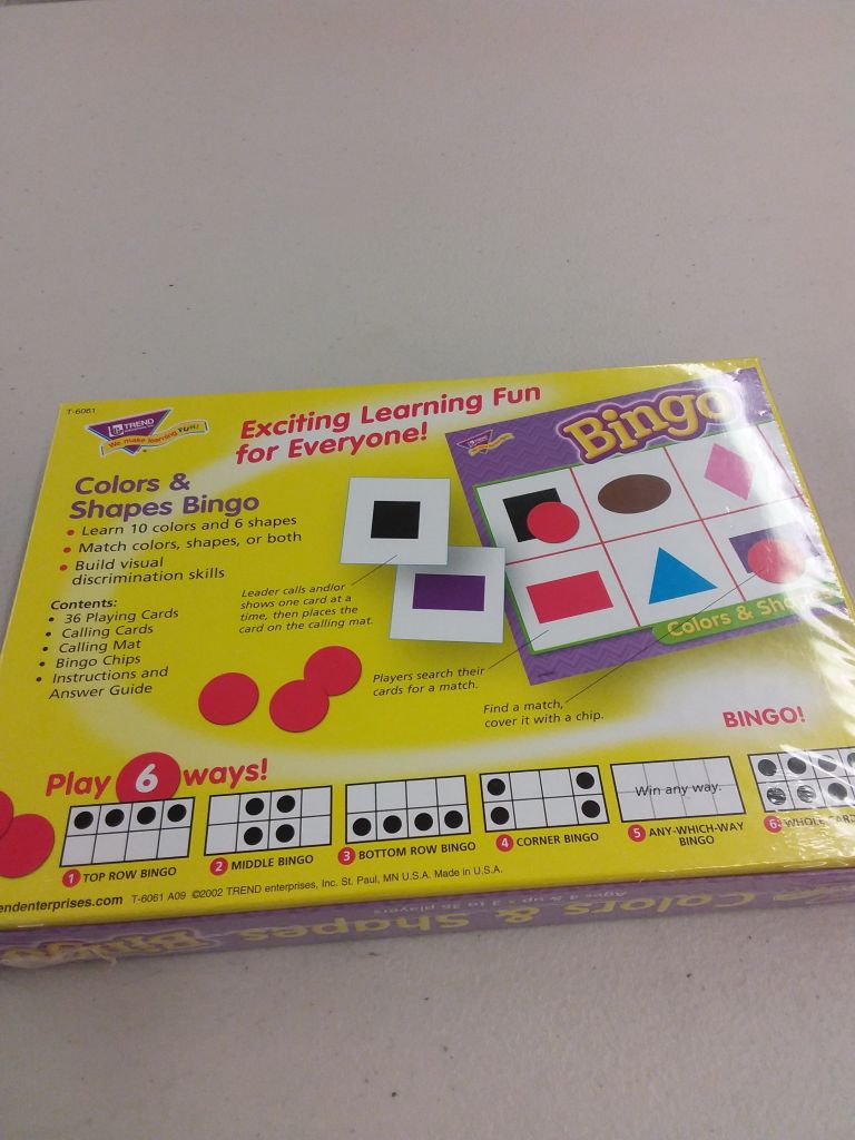 Ages 4+, 3 to 36 Players. Identify and Match 10 Colors and 6 Shapes.