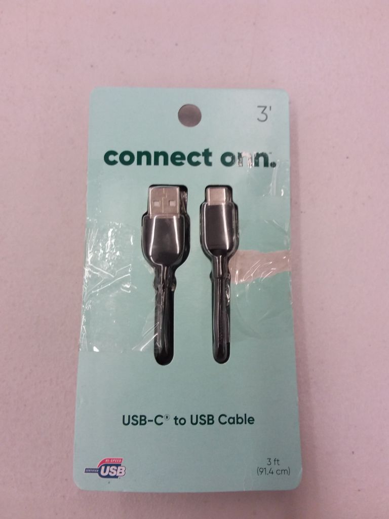 Connect onn USB-C to USB Cable, 3 ft, Black