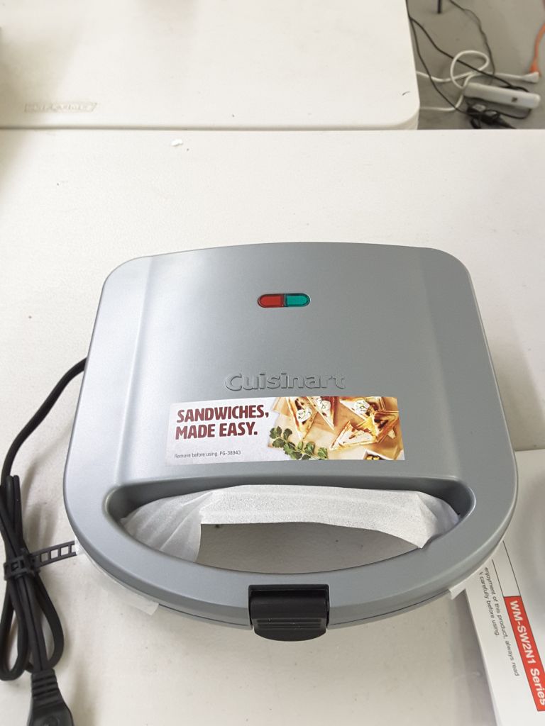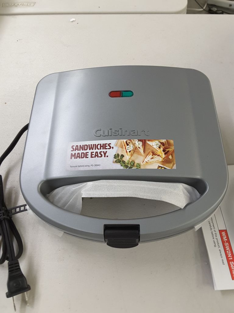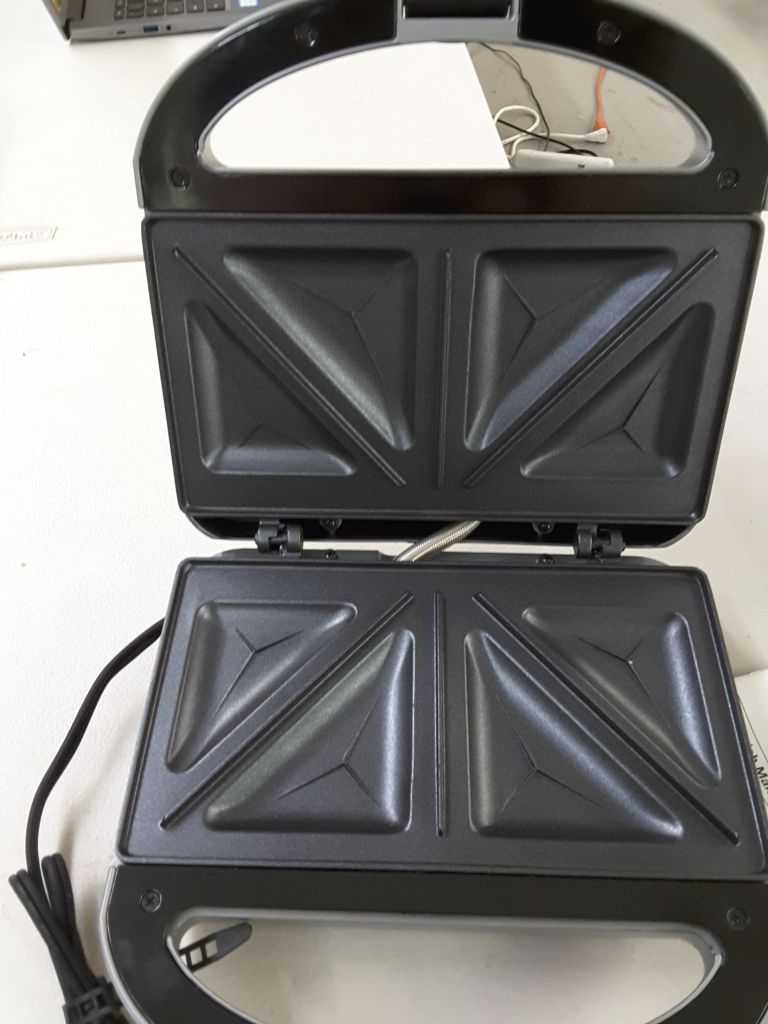 Two at a time sandwiches, omelets or desserts, evenly brown top to bottom and side to side, built in separator.