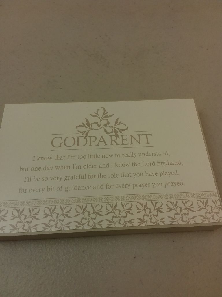 As a thoughtfully-designed home décor accessory, this wall art helps you show off your style, while also showcasing a great, faith-filled reminder This wall art features 'Godparent...' inspirational sentiment with soft scrolled ivory background, which is sure to serve as an important reminder of this important role