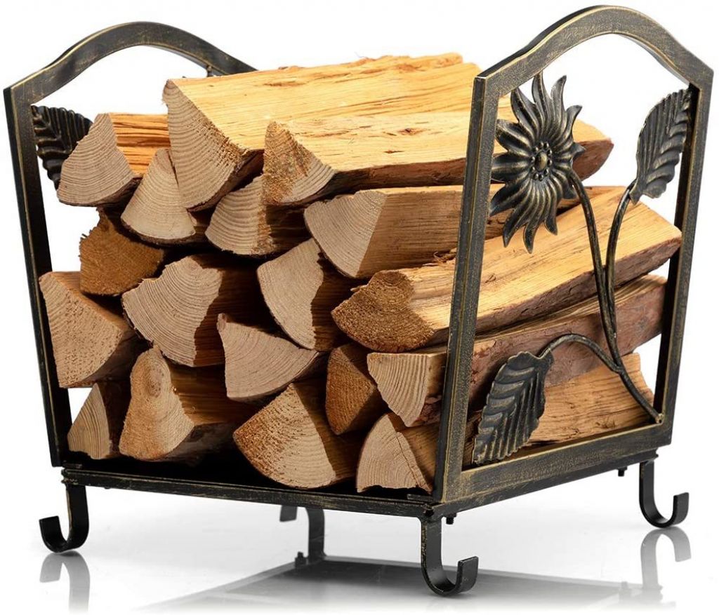 DOEWORKS 17 Inch Small Firewood Racks Heavy Duty Steel Wood Storage Bronze Log Rack Holder