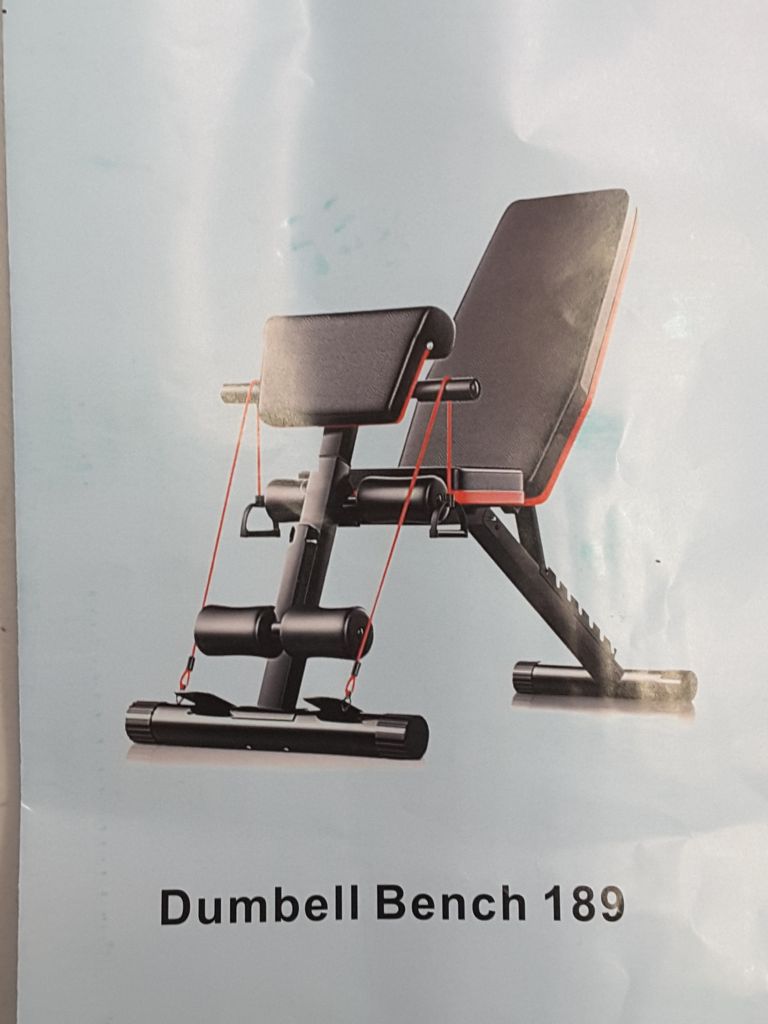 Dumbell bench 189, comes with set up and instructions. Orange and black (Very Similar to Item Pictured)