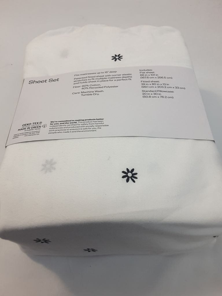 Easy Care Printed Pattern Sheet Set - Room Essentials Twin/Twin XL, Comes with 1 Flat Sheet, 1 Fitted Sheet and 1 Standard Pillowcase