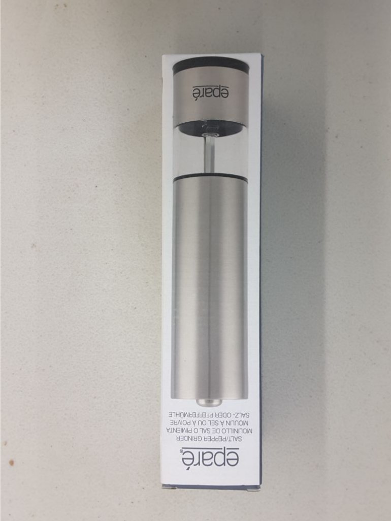 Electric Salt or Pepper Grinder - Battery Operated Ceramic Burr Peppermill Shaker - Automatic Stainless Steel Grinders - Mill With Led Light By Eparé