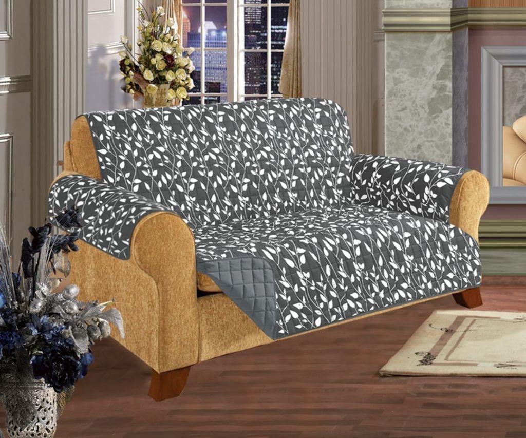 Elegant Comfort Quilted Leaf Design ReversibleFurniture Protector - Gray - Love Seat