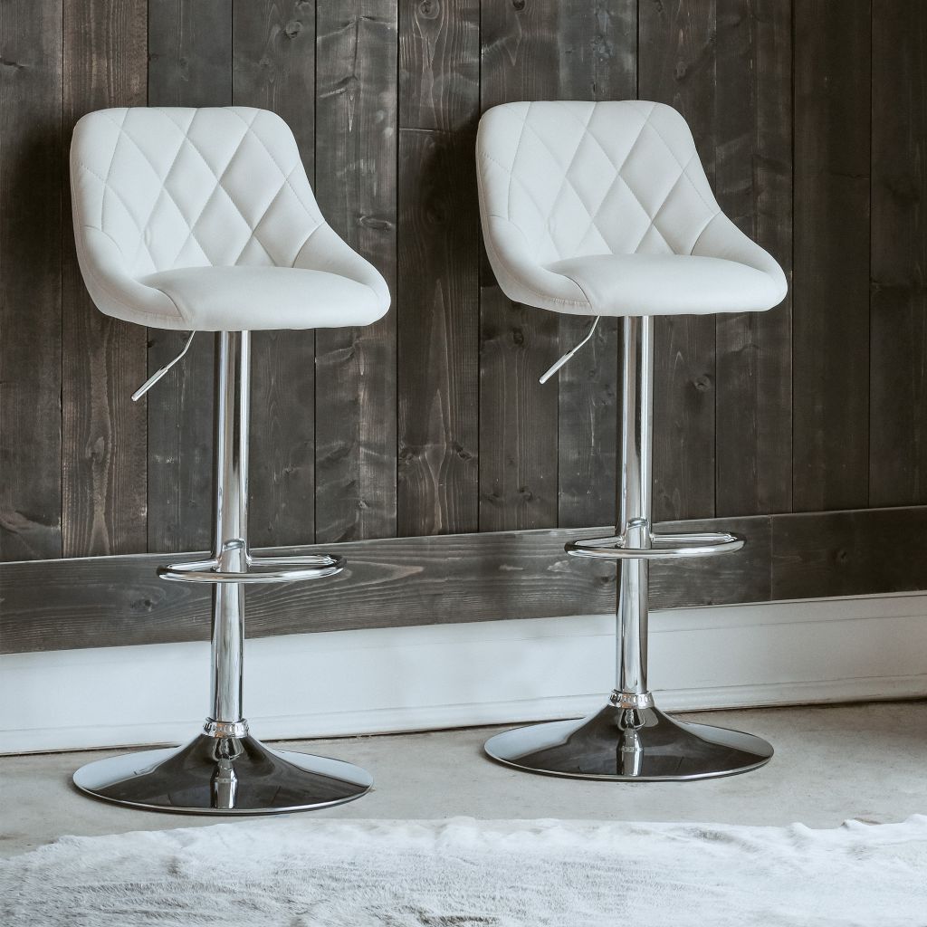 Faux Leather Modern Adjustable Counter Bar Stools, Set of Two, White