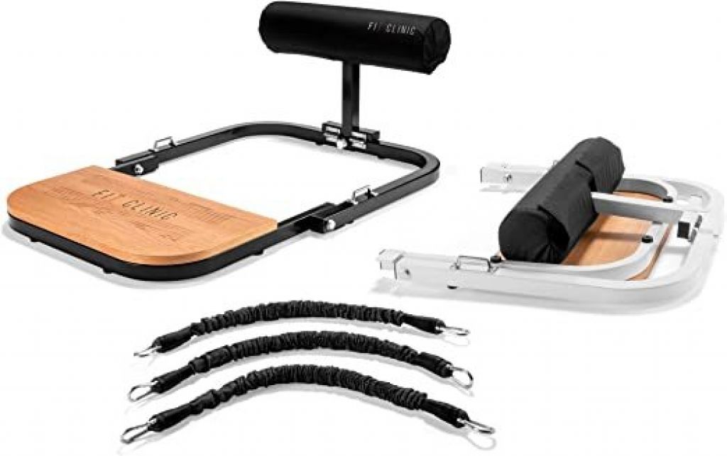 Fit Clinic Hip Thrust Machine | Hip Pad for Exercise & Booty Workouts for Women. Glute Machine & Bar Cushion for Weightlifting Hip thrusts. Includes 3 Resistance Bands Up to 135lbs. (White Version)