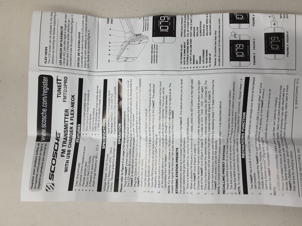 FMTD3PRO TuneIt Pro FM Transmitter with Built-In USB Charging Port and AUX Cable
