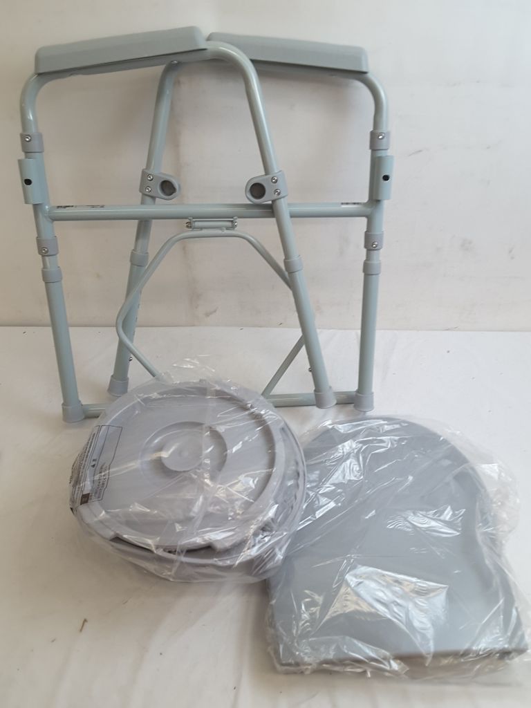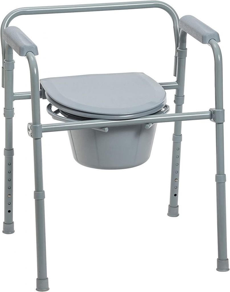Gray commode with adjustable leg height