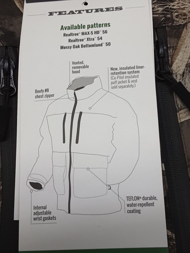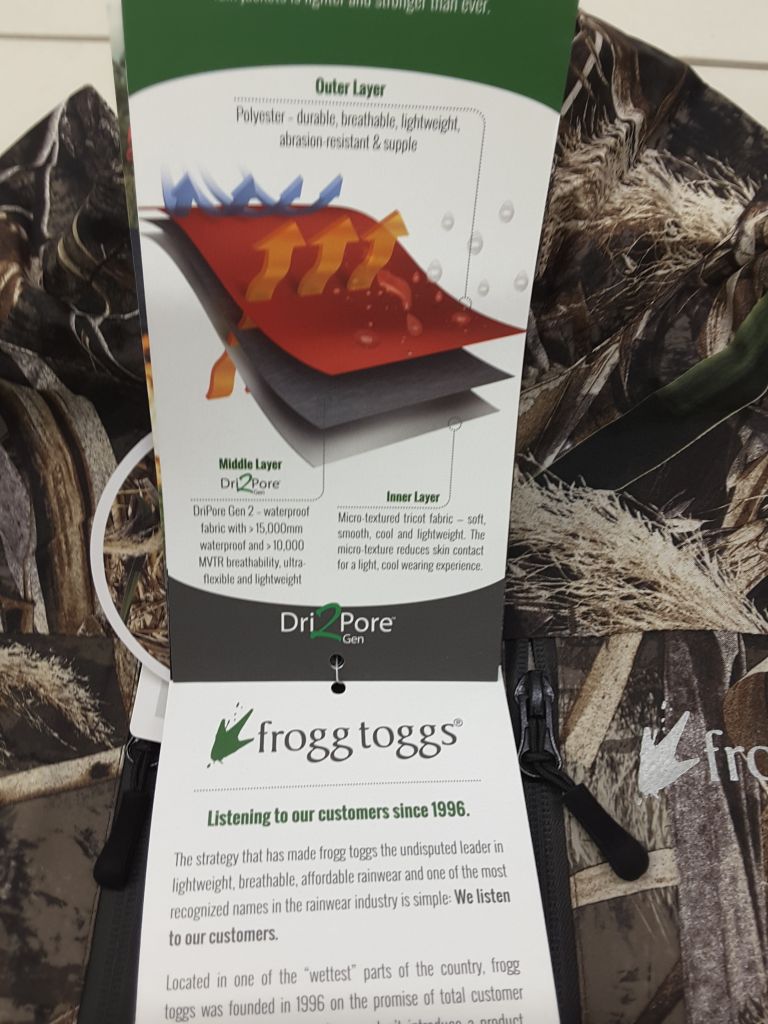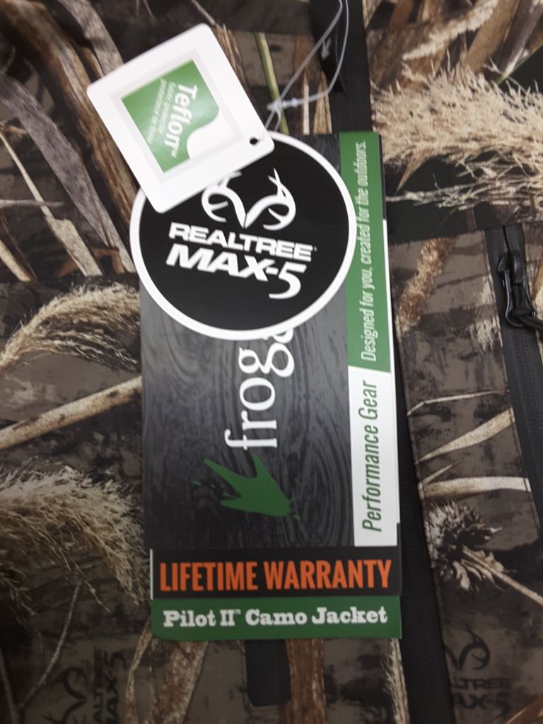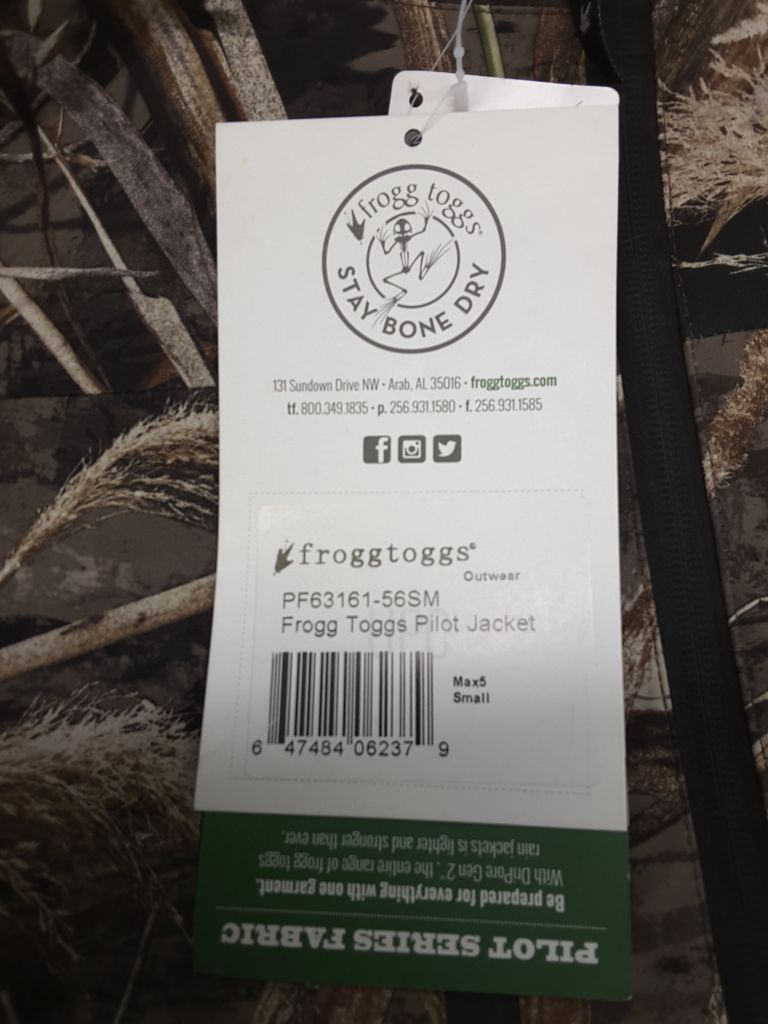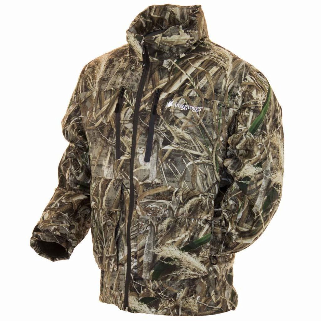 Frogg Toggs Pilot II Guide outdokr Jacket, Realtree Max5, Size Small, removable hood, chest zipper, adjustable wrist gaskets, durable water repellent coating,
