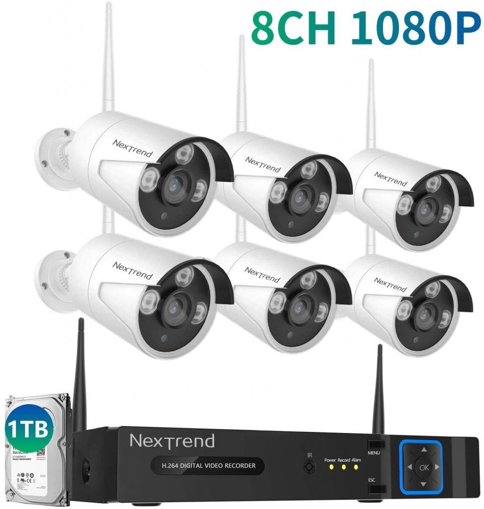Security Camera System Wireless, NexTrend 8CH 1080P NVR Camera System with 1TB Hard Drive, 6 IP Security Cameras 2.0MP with Night Vision Waterproof, Plug n Play Indoor Outdoor Video Surveillance System NOTE: Box photo shows 8 cameras but there are only 6 included.