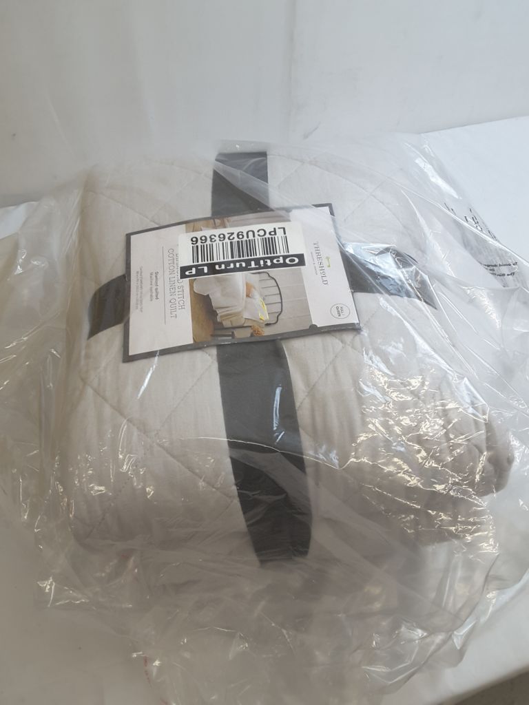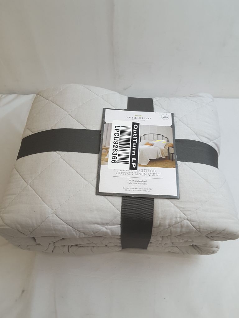 Full/Queen Diamond Stitch Cotton Linen Quilt Light Gray - Threshold