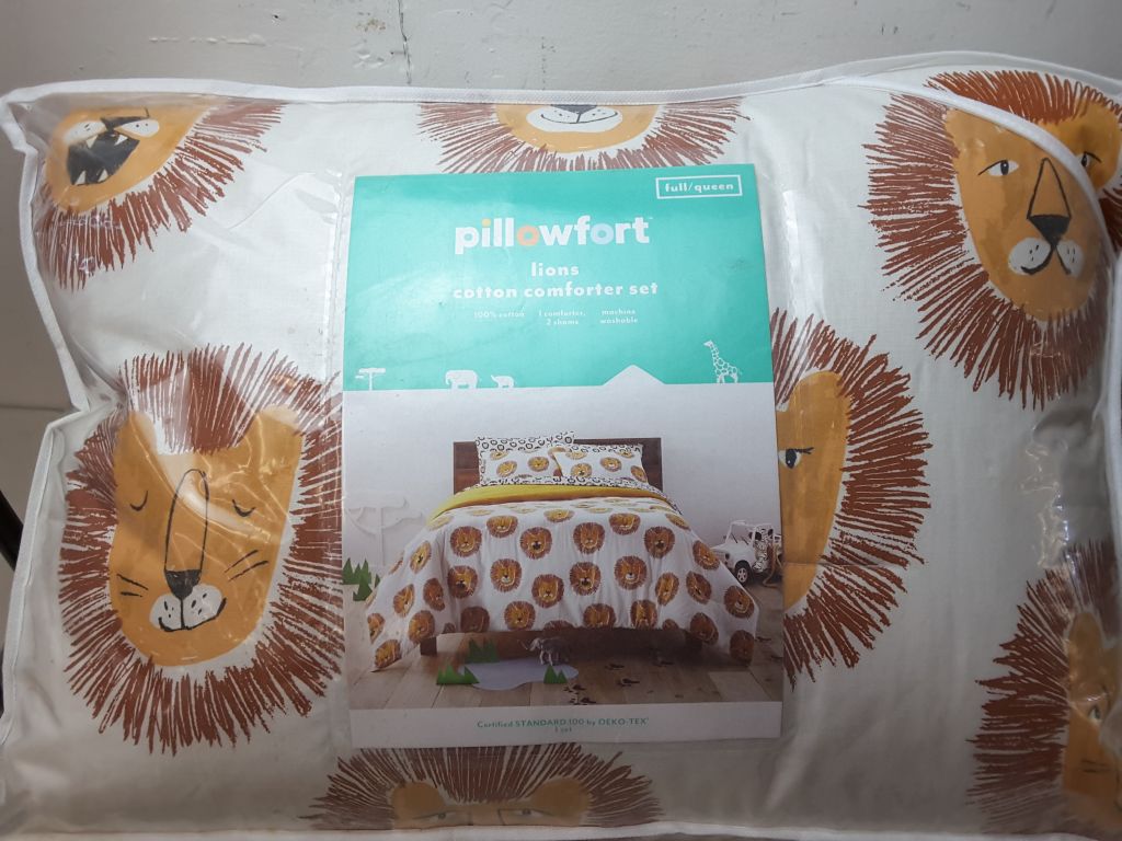 Full/Queen Lions Cotton Comforter Set Yellow - Pillowfort