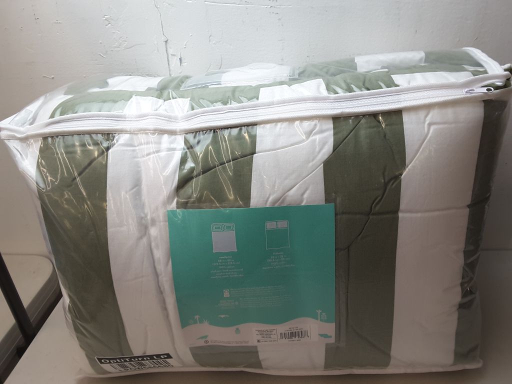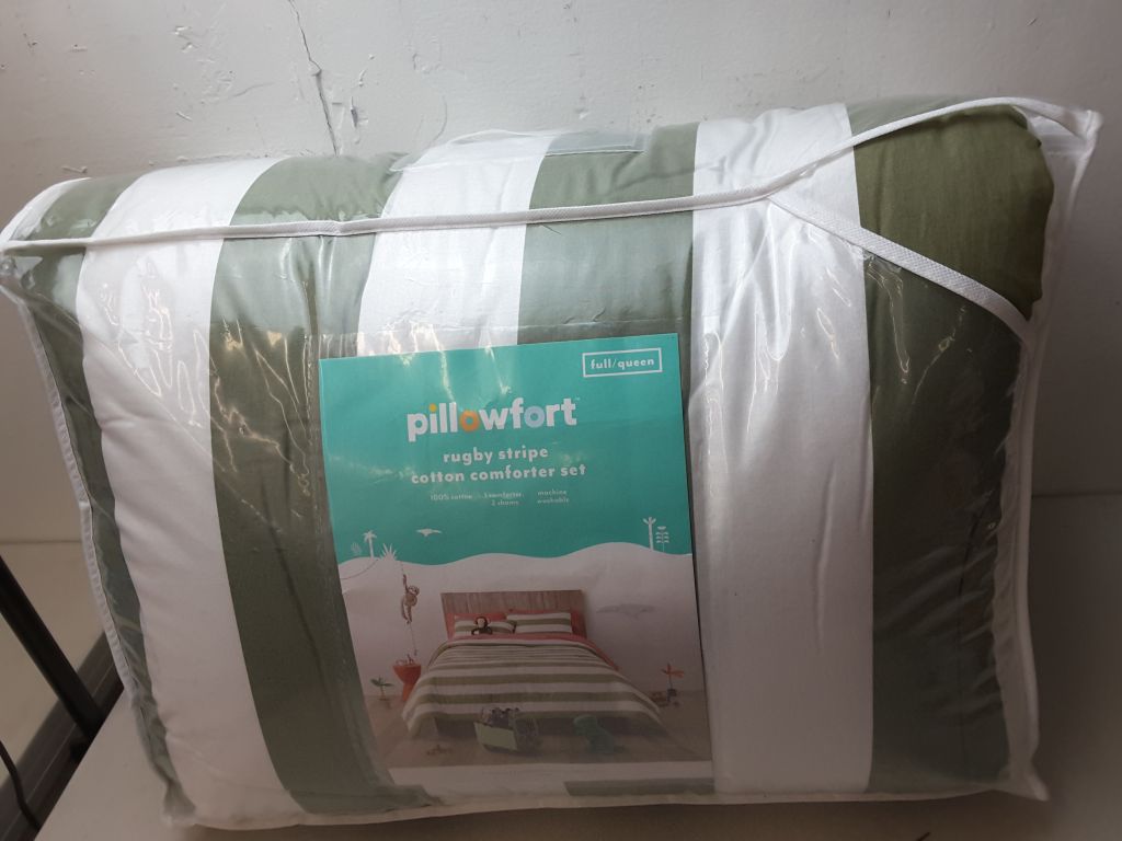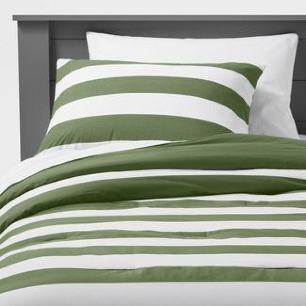 Full/Queen Rugby Stripe Cotton Comforter Set Green - Pillowfort