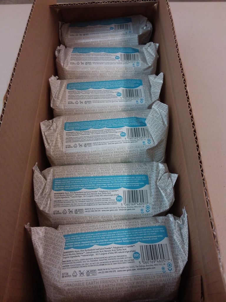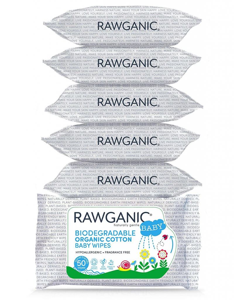 RAWGANIC Gentle Biodegradable Organic Cotton Baby Wipes, Hypoallergenic Fragrance-Free Moist Wipes for Nappy Change, Face and Body Cleansing, with Aloe Vera, 6 Packs of 50 (300 Wipes)