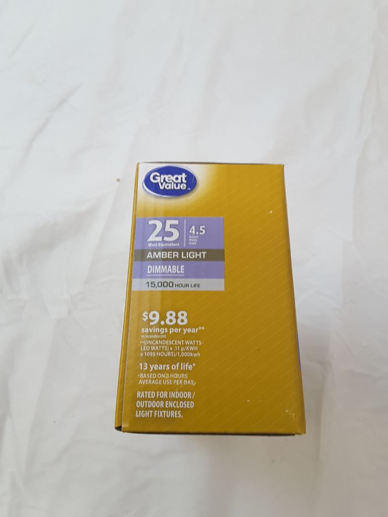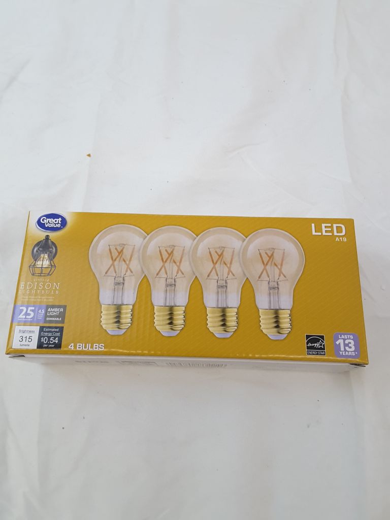 Great Value Edison LED A19, 4 Lightbulbs 25 Watt Amber Light