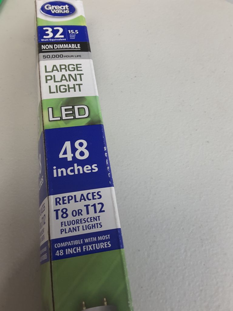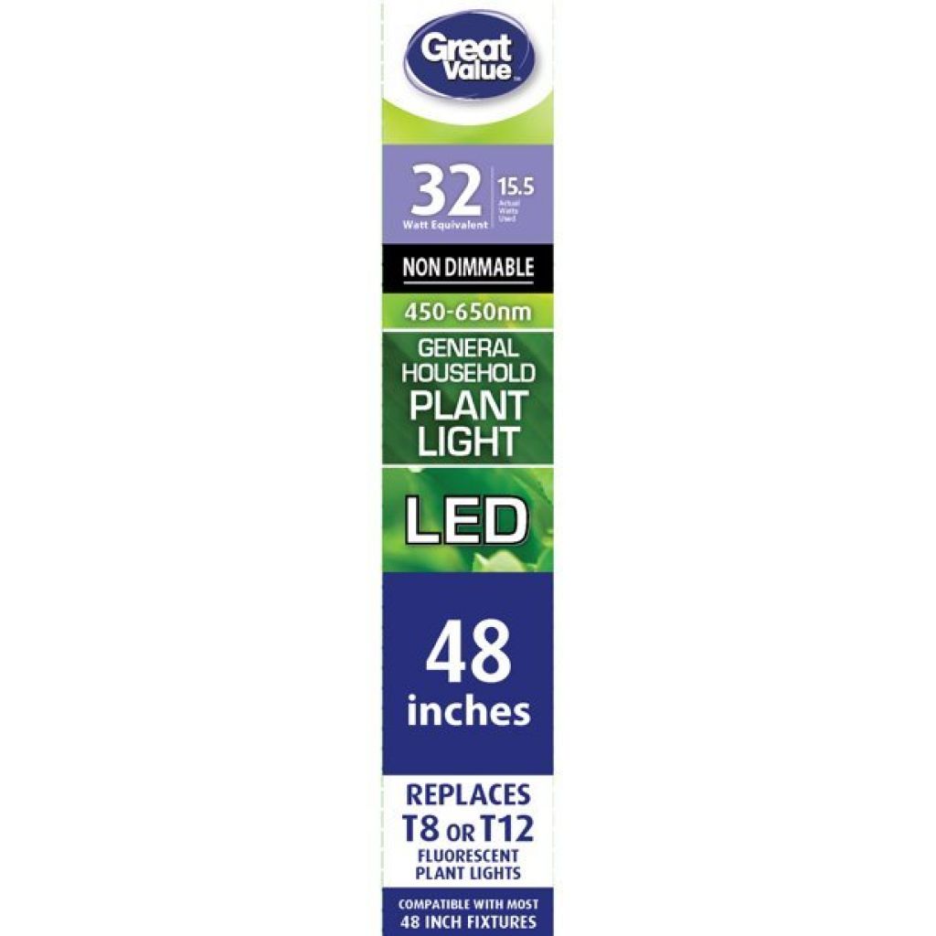 Great Value LED Light Bulb, 18W (32W/40W Equivalent) T8/T12 Grow Light Replacement Lamp G13 Base, Non-dimmable, Plant Light, 48-inches, 1-Pack