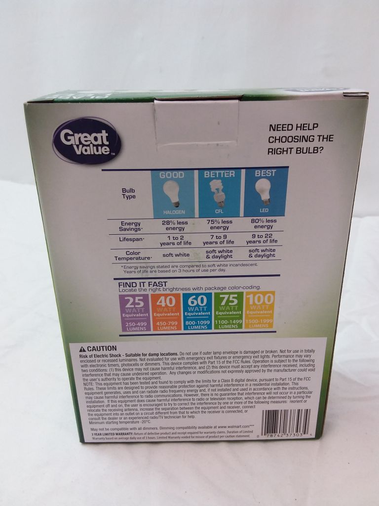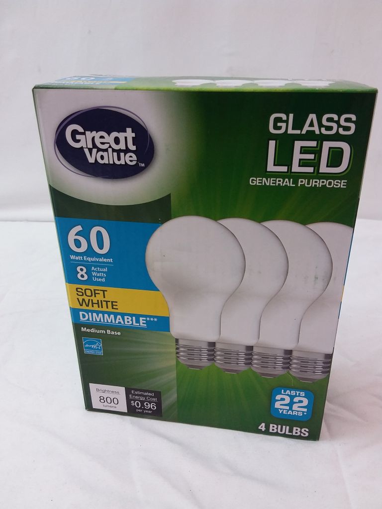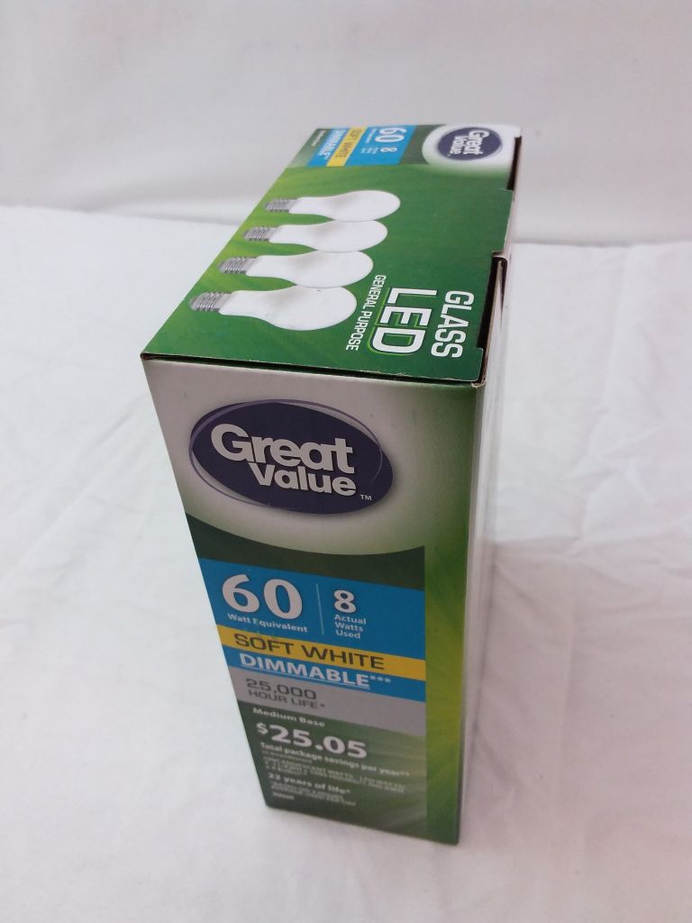 GREAT VALUE LED Light Bulbs 62 60W Soft White Dimmable