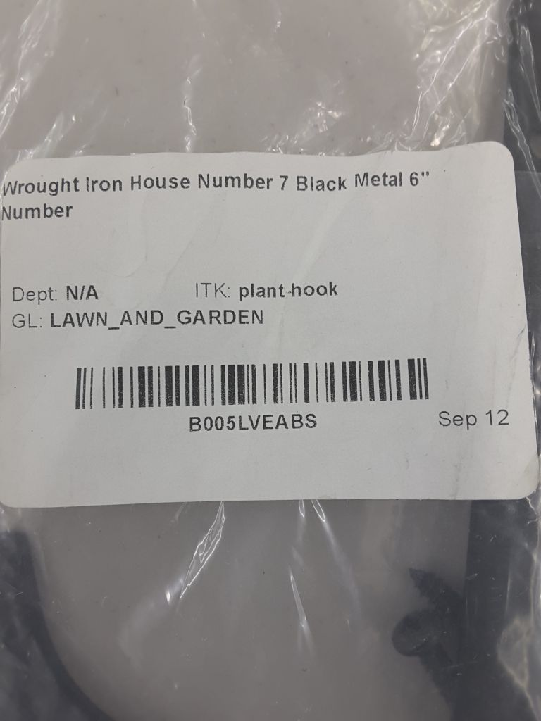Wrought iron house number 7 Black metal 6" number
