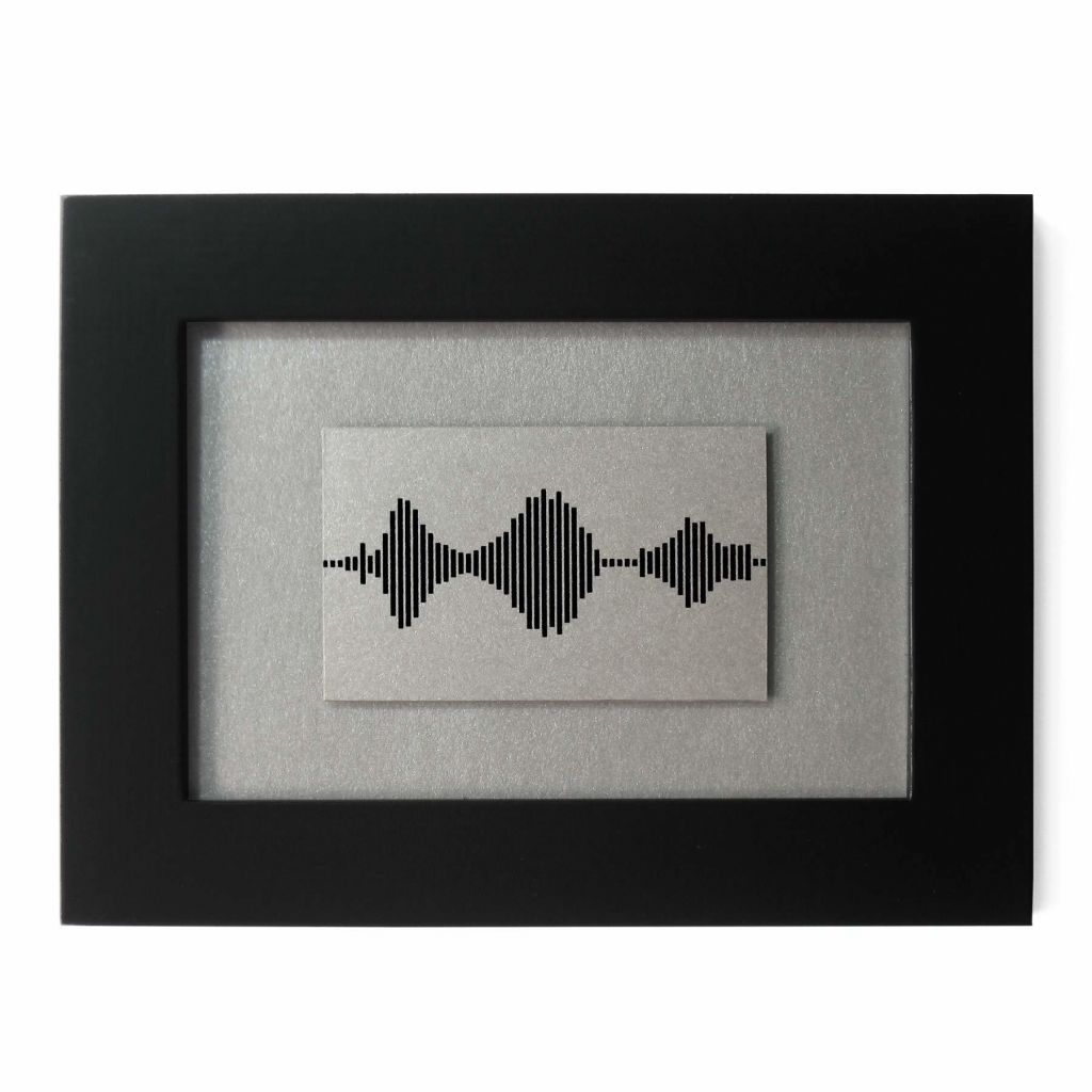 “I Love You” - Visible Voice Soundwave Art, Silver Color Print with Frame, Gifts and Presents for Iron Anniversary, Valentines Day, Father's Day(3.5 x 5 inch)
